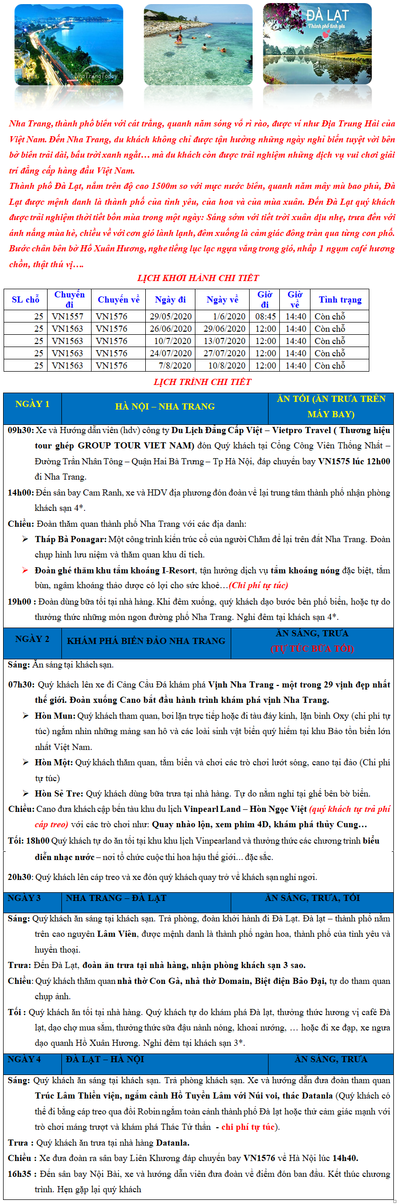 HÀ NỘI – NHA TRANG – ĐÀ LẠT – HÀ NỘI